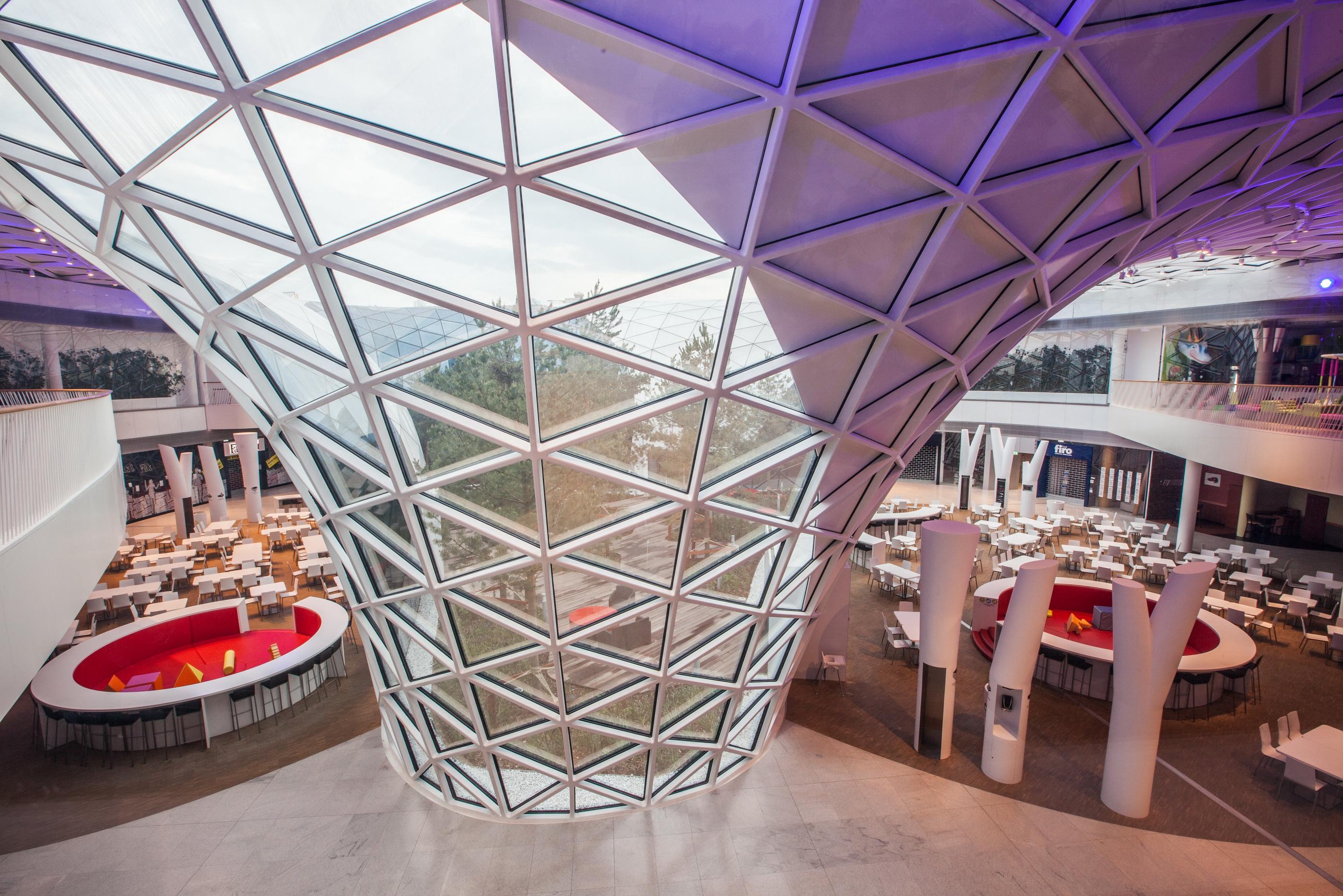 Realizace corianových prvků (bary, stromy, dětský koutek, květináče, infopoint, napájecí sloupky). Dodávka stolů a židlí do foodcourtu.