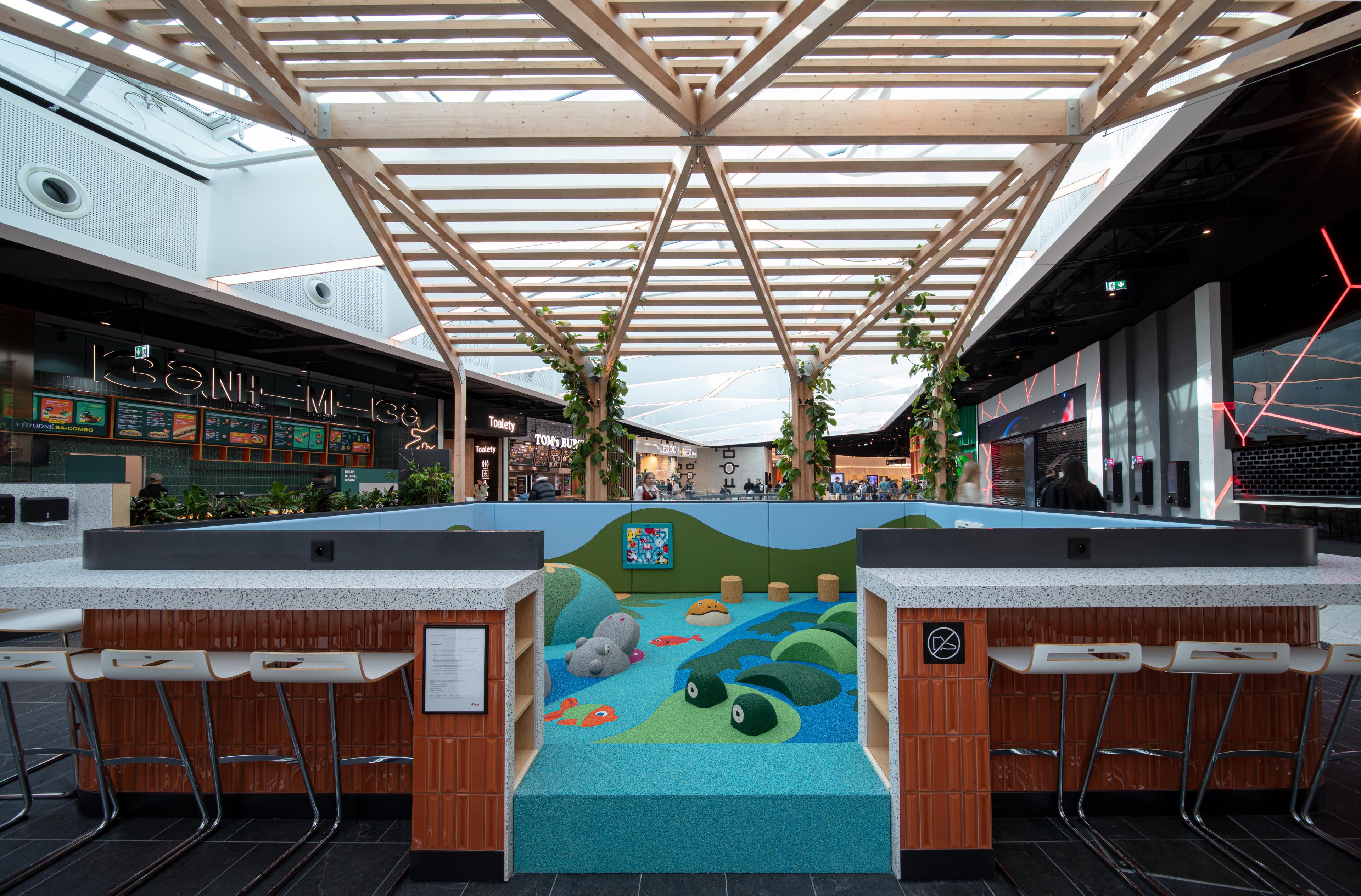 Pro obchodní centrum Westfield Černý Most jsme realizovali atypické interiérové prvky a mobiliář v souladu s přísnými požadavky certifikace BREEAM. Projekt spojil špičkový design, precizní výrobu a důraz na udržitelné materiály – od dřevěných povrchů až po technologicky integrované navigační systémy.